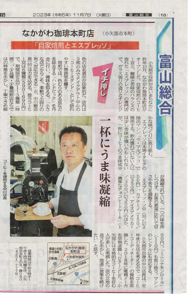 本日から「なかがわ珈琲 本町店(北陸銀行石動支店様横)」がオープンしました。